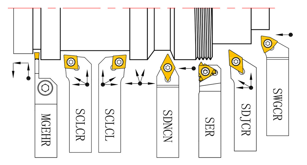 • Set da 7 utensili in acciaio con inserti in metallo duro indicizzabili